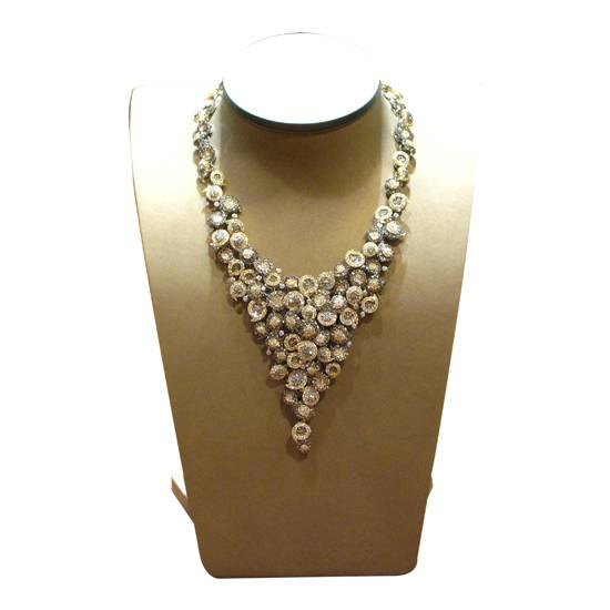 This necklace features many brown and white diamonds all over the whole piece. The diamonds are about the same size, but seemingly in different patterns. Combined altogether, they look like shining stars in a clear sky at night, sparkling wonderfully. Such a romantic picture is definitely welcomed by ladies of all ages.