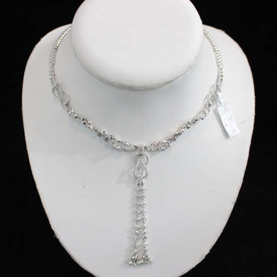 Featured here is a diamond necklace with a classy design. The 18K white gold necklace base adds dazzling glamor to the entire piece. This chic and elegant diamond necklace is an ideal addition to your jewelry box.