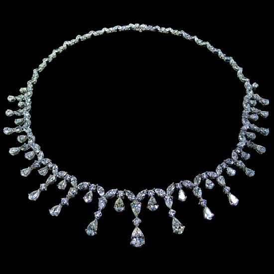 This noble necklace features fancy pear-drop diamonds as noble pendants perfectly cluster around the chain. The whole piece radiates eternal elegance. Add this glamorous piece to your jewelry store.