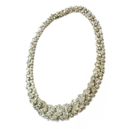 The ladies' necklace is fully set with dazzling diamonds for a luxurious touch. The fine casting ensures long-lasting beauty. This diamond necklace is simply breathtakingly beautiful.