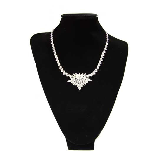 This diamond necklace comes with a graceful and stylish appearance. With delicate cuts, the exquisite diamonds flickers under light. The elegant necklace is a great addition to your jewelry collection.
