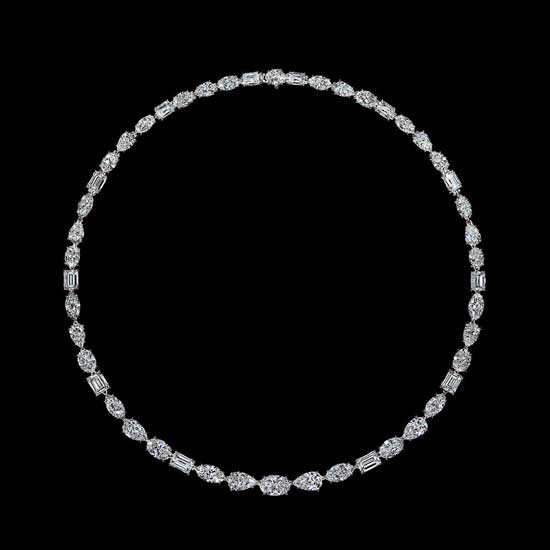 This showcased necklace presents a contemporary design with exquisite craftsmanship. It is crafted with dazzling diamonds for added elegance and glamor. This diamond necklace makes a pretty way to complement your trendy look.