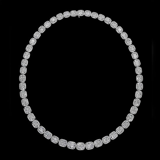 This necklace appeals to people instantly with its neat yet deluxe appearance. It is designed with allover certificated diamonds stones, dazzling charming luster at all angles. This necklace surely is a great addition to your fine jewelry collection.