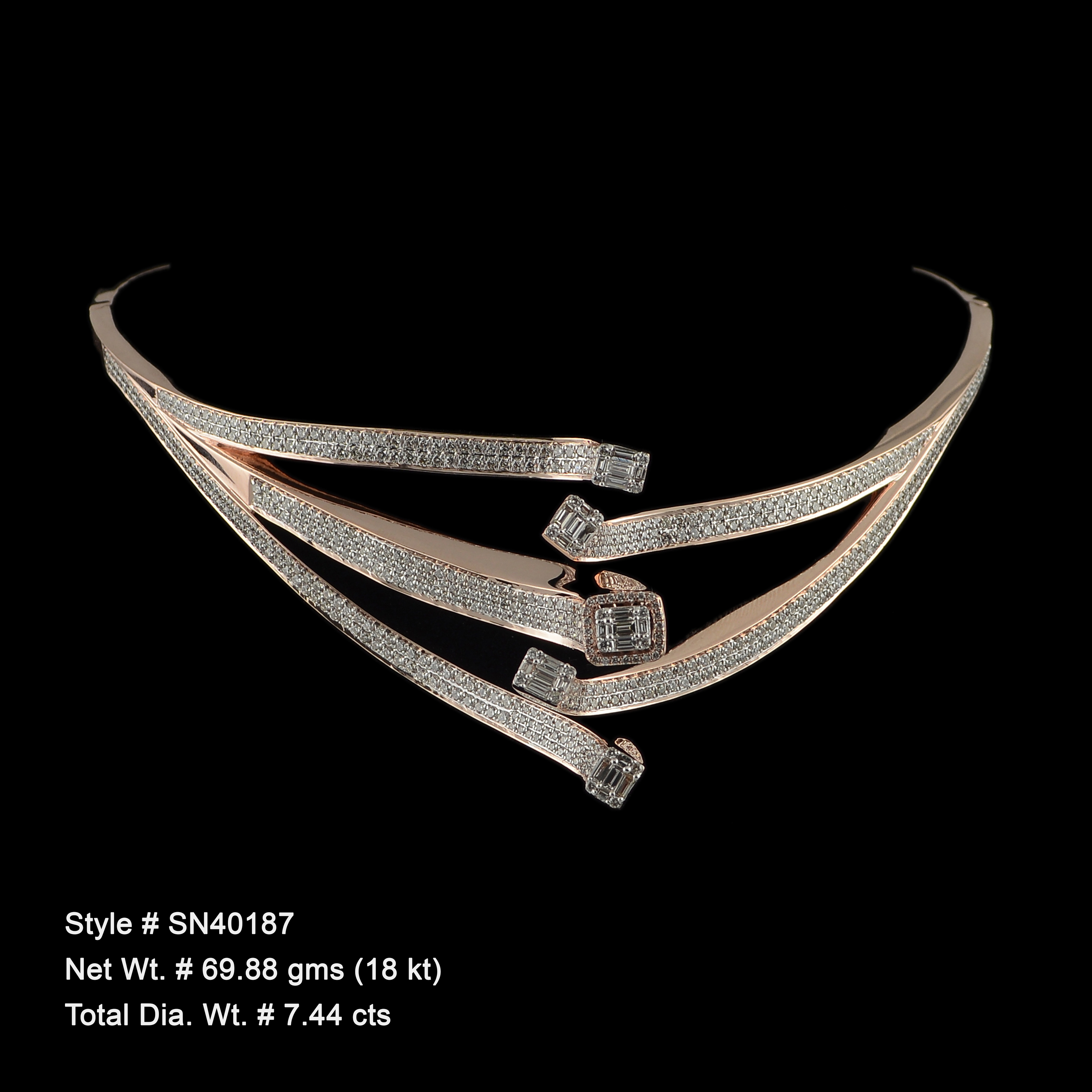 - Main stones: 7.44 ct diamonds.