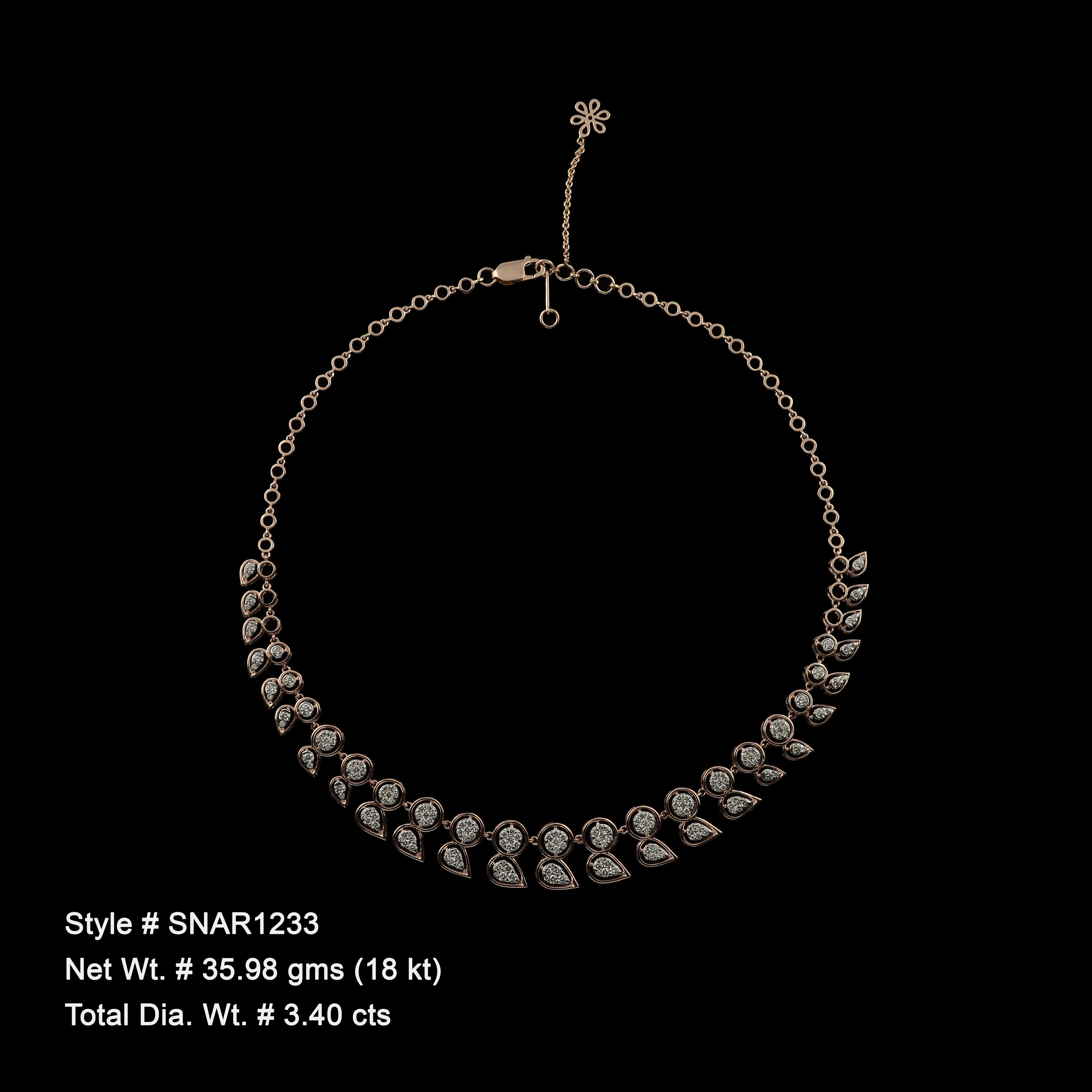 Make yourself the envy of the crowd by pairing up your evening gown with this diamond necklace. Looking sumptuously gorgeous with a clean row of studded diamonds, the 18K gold necklace is sure to add no shortage of sparkles to your statement-making ensemble. Completed by a clasp closure, it promises to lie smoothly over your chest to dazzle your look with a pop of glitz and glamor.