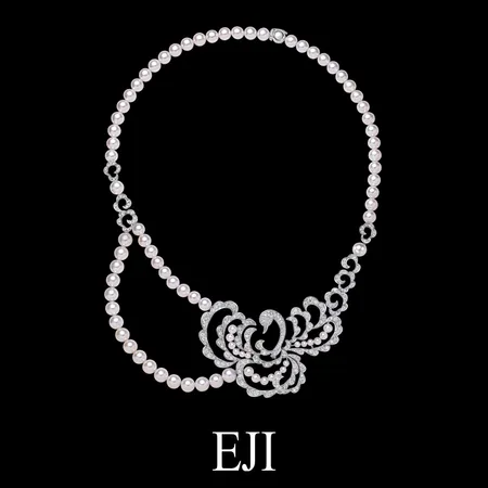 Complementing the brilliance of the diamonds are lustrous Akoya pearls, renowned for their radiant glow and flawless surface. These pearls add a touch of softness and refinement to the design, creating a perfect balance of sparkle and serenity. Crafted in luminous white gold, the necklace exudes its sleek silhouette captivating the graceful curves of the swan. The necklace captures the essence of modern femininity while celebrating the enduring allure of classic design, elevating impeccable style.