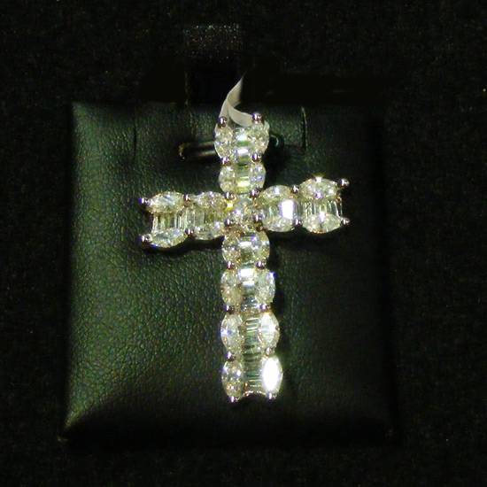 This pendant features a diamond-made cross. It consists of at least 20 diamonds, which are all faceted, creating a very sparkling image for the whole pendant. The cross-shaped pendant associates itself with Jesus, which offers Christian wearer a peaceful and calm feeling.