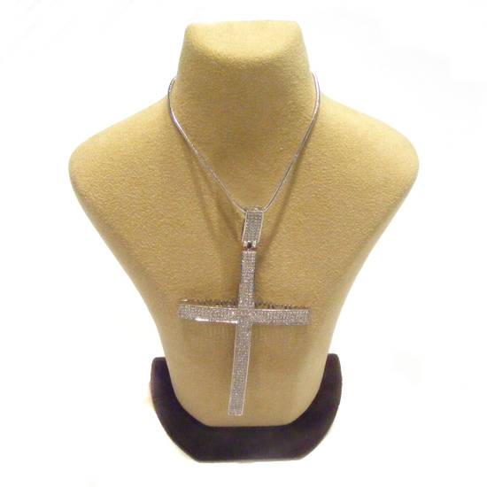 This is a diamond pendant designed with a cross motif. The pedant features multiple 416 pieces of small white diamonds in micro setting. The bail of the pendant is also decorated with white diamonds.