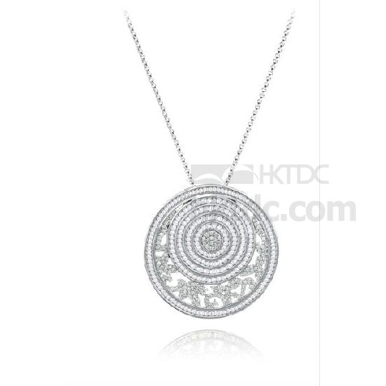 This diamond pendant comprises of a mix of European and Middle East style. Well assortment of taper and baguette in contrast to round diamond made this a fascinated design.
