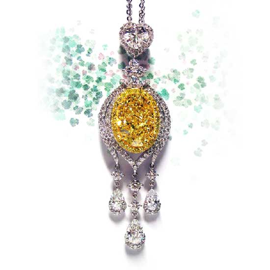 - Gem: 8.03ct VS1 fancy yellow diamond and 1.01ct E VS1 pink diamond.