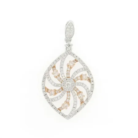 This pendant in white gold and rose gold resembles the warmth of the sun. It is embellished with finely-cut diamonds all over for excellent radiance. The sparkling diamonds nicely enhance the pendant's luxuriousness.