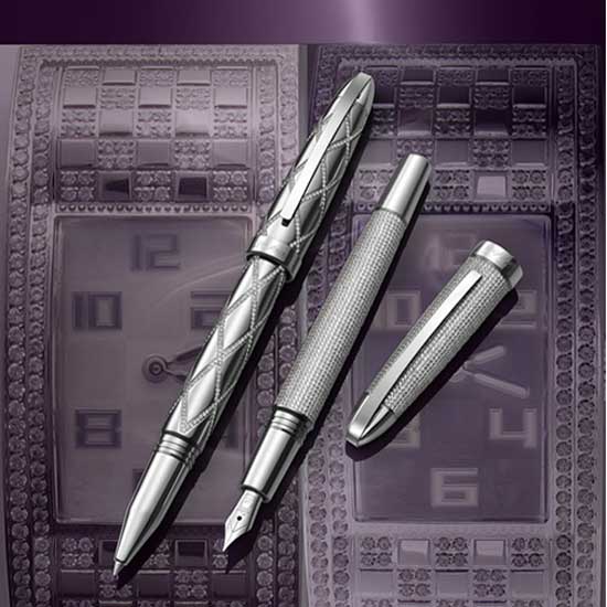 Featured here are two pens decorated with sparkling diamonds. The pens pair the wondrous diamond with the lustrous silver sheen of Rhodium to create an enviable look. These pens are great gift ideas for your friends and work colleagues.