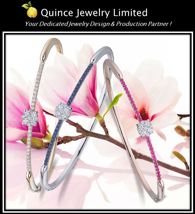 Bangle set with SI1 quality diamond and precious stone in 18k gold setting. Luxury with a touch of playful elgance, yet still very affordable to ladies and gentlement worldwide