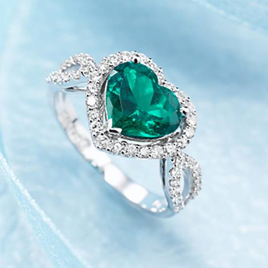 The diamond ring boasts precise cutting for a sophisticated touch. The ring is topped with a heart-shaped diamond to create a sense of romantic glamor. This stunning diamond ring makes a great item to enhance the fine jewelry collection of ladies.