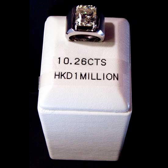 This diamond ring flaunts a polished thick band. Its top comes with a stunning diamond in exquisite cutting. The corners are brilliantly smoothed for added style. This diamond ring offers the highest level of glamor and extravagance to the wearer.