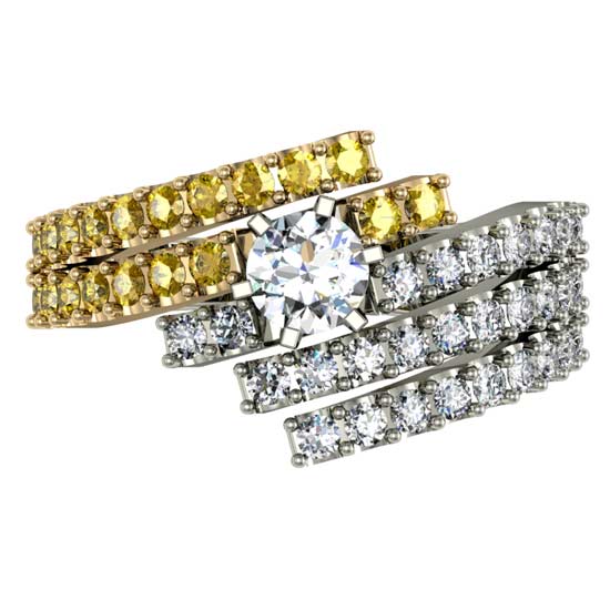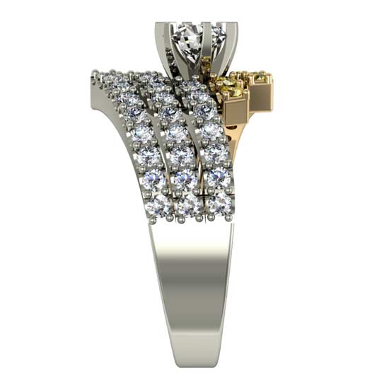 This stunning finger ring flaunts a sense of sophistication. It is set with 19 yellow sapphires (1.8mm) and 28 diamonds (1.8mm) for an elegant style. This magnificent diamond ring is an ideal choice for grand occasions.