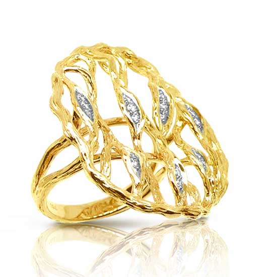 Shown here is a diamond ring with a sophisticated appearance. It is cast in 18k yellow gold with delicate craftsmanship. Highlight your outfits with this diamond ring.