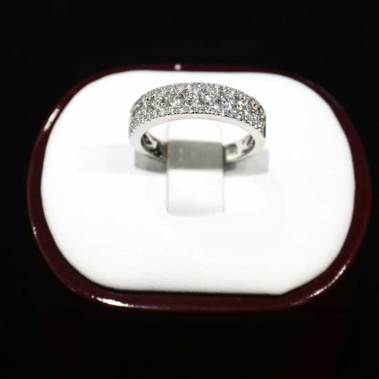 This featured ring is encrusted with sparkling diamonds for a touch of style. The ring comes with 18K white gold construction for enhanced beauty and value. This dainty ring adorns your hand with low-profile grace.