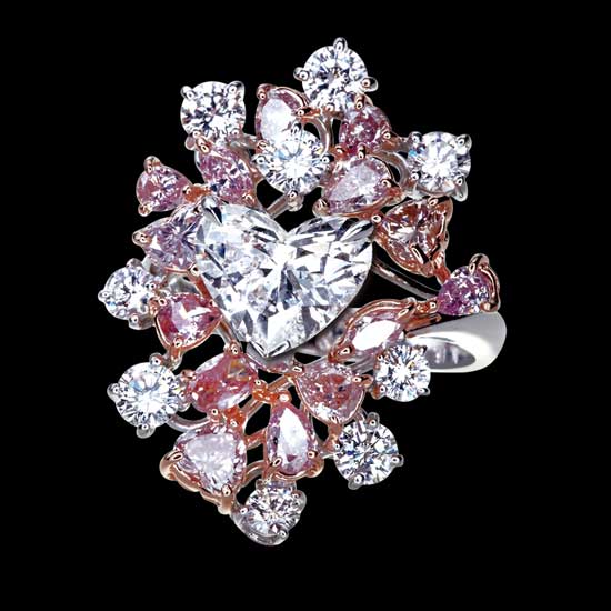 The dainty ladies' ring captures your heart at the first glance with the romantic design, which is flooded with heart-shaped details all over. The luxurious and classy addition of twinkling diamonds let the glamorous ring shine proudly at all directions. Dress up your evening gown with this gorgeous diamond ring.