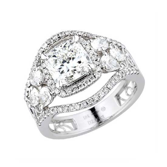 This well-designed diamond ring comes with a graceful and stylish appearance. The ring features a square main diamond decorated with small diamond stones. It is a great addition to your jewelry collection.