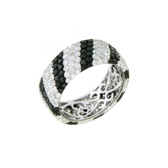 This finger ring comes with a fashionable and luxurious design. It is crafted with dazzling black and white diamonds for added elegance. This diamond ring surely is a great item for adding some glamor to your slender finger.
