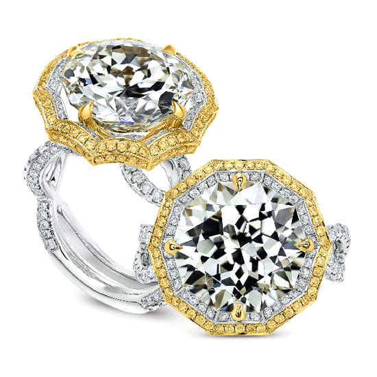Set with white and yellow diamonds weighing 1.81ct in total, mounted in 18K (750) Y/G and W/G.
