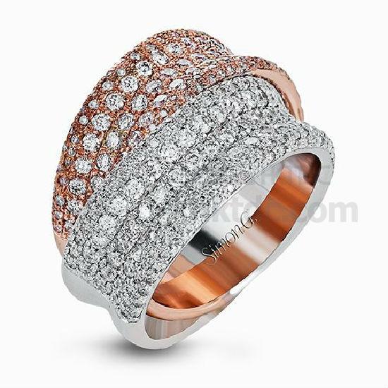 Two intertwined shimmering bands in white gold and rose gold set with 2.24 ctw white diamonds in pave settings form this exquisite two-tone ring.
