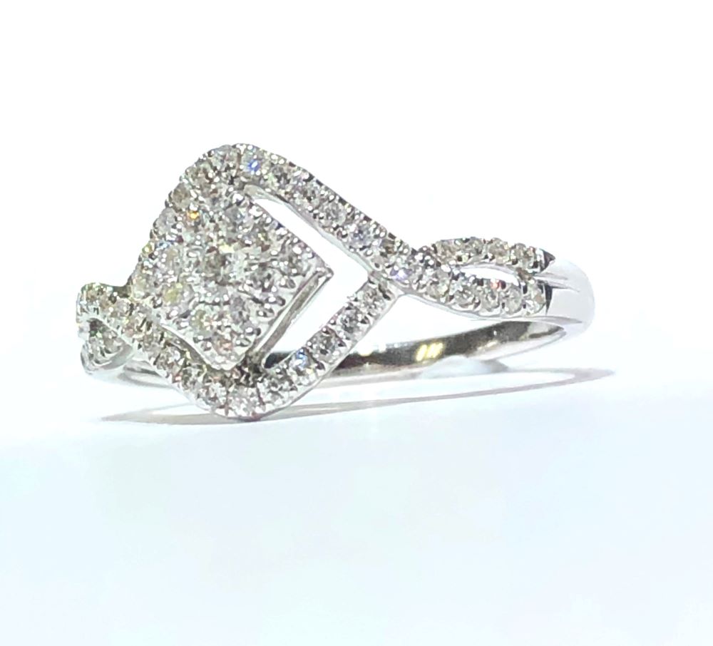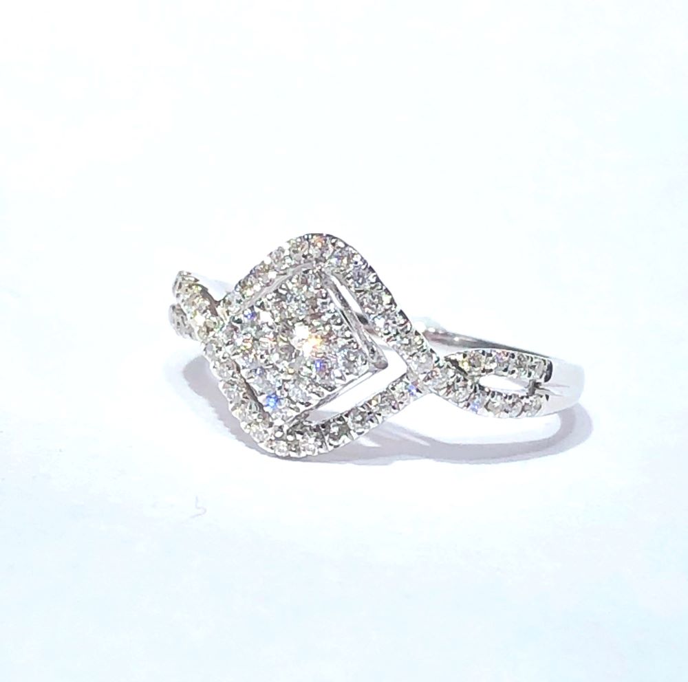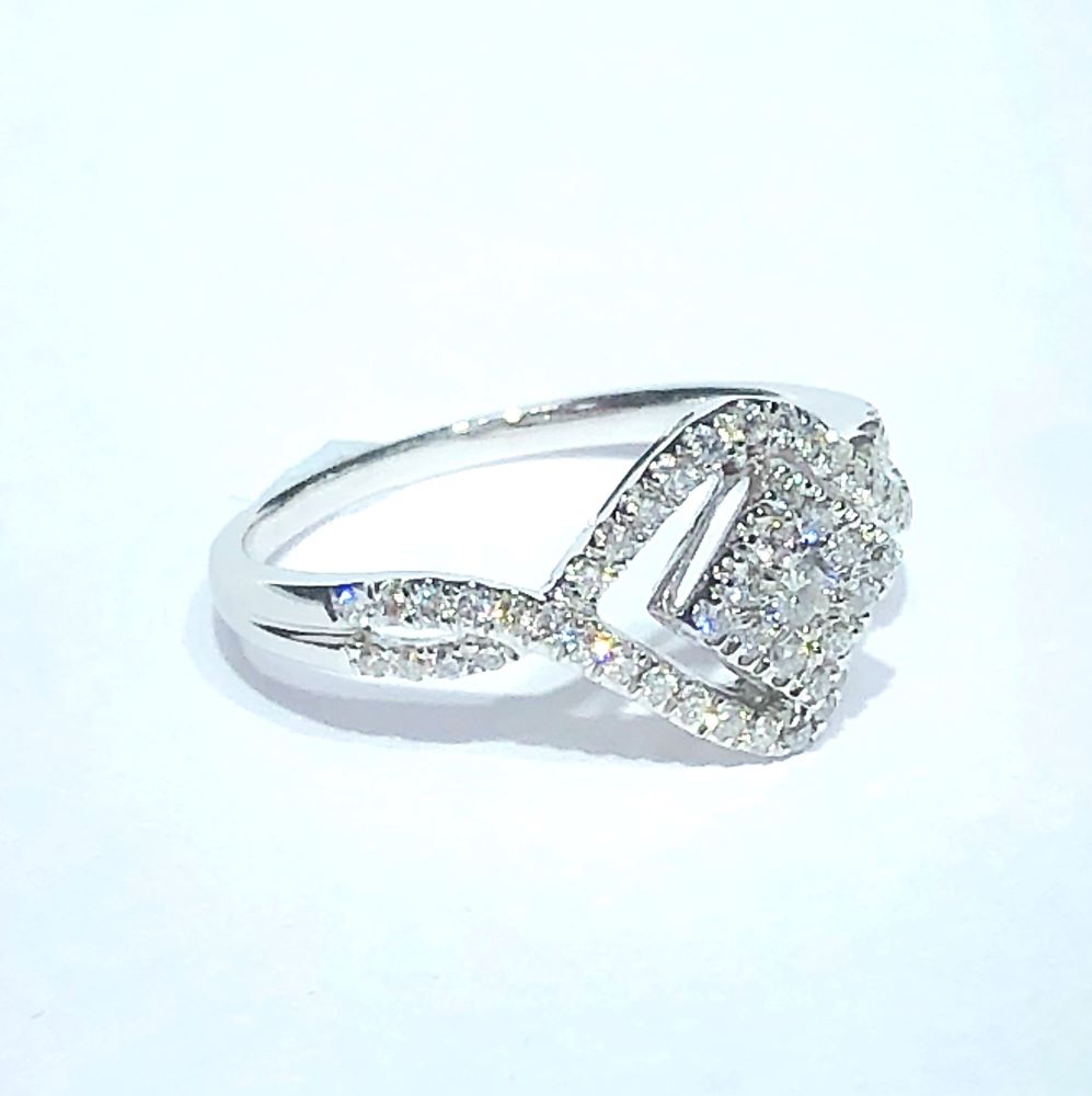 得體大方的菱形鑽戒以群鑲鑲嵌,鑚石光芒倍現