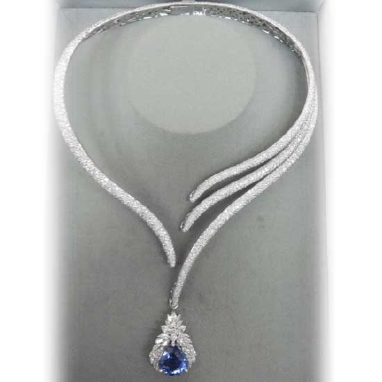 This is an appealing necklace that shimmers with a highly glossy finish. The stylish pendant comes with a teardrop-shaped sapphire centerpiece. Adorned with dazzling diamonds, this necklace will grab your attention instantly.