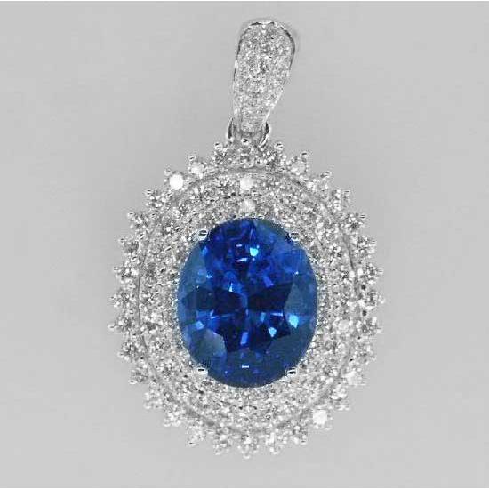 This showcased pendant comes with a fashionable and luxurious design. It is finely made with round diamonds and an oval sapphire stone for an elegant touch. This stylish pendant is an ideal addition to complete your jewelry box.