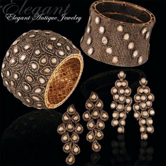 The diamond set comes with two bangles and two pairs of earrings. They are delicately made with exquisite craftsmanship. These jewelry pieces are ideal for functions like parties, weddings and banquets.