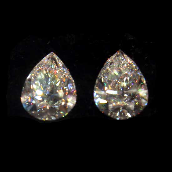 The glittering set comprises two pear-shaped diamonds. This pair of diamonds is dazzling and internally flawless. This diamond set is an ideal choice for drop earrings.