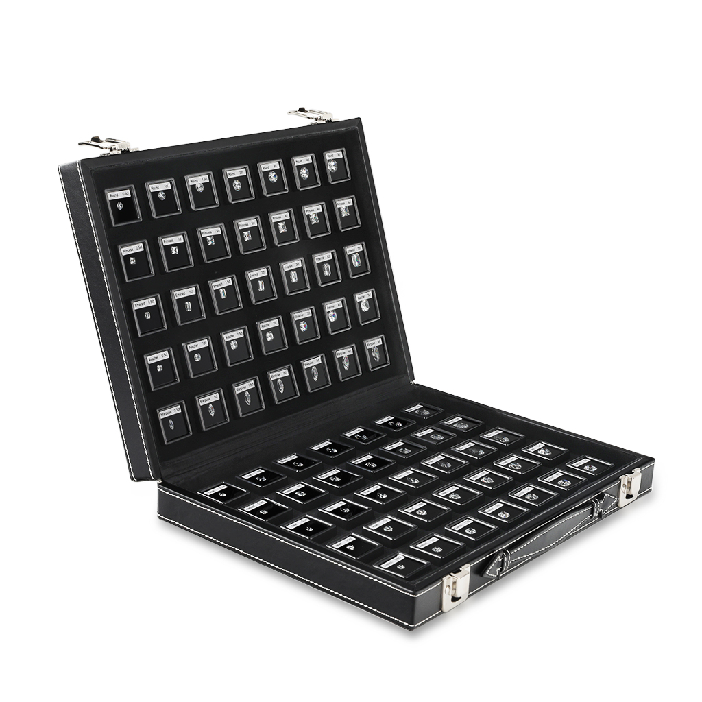 Unveil the brilliance of diamonds with GemTrue's Diamond Shapes and Sizes Master Stone Set (Item No. DK106-B). This expertly curated collection is available in two variations—DK106-B1 and DK106-B2—each designed to showcase an exceptional range of diamond sizes and shapes, making it the ultimate tool for jewelers, gemologists, and enthusiasts.