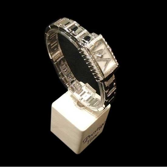 This jewelry watch comes with a graceful and stylish appearance. The lustrous stainless steel surface of the watch is fitted with shiny white diamonds. The exquisite watch goes well with your daily outfit.