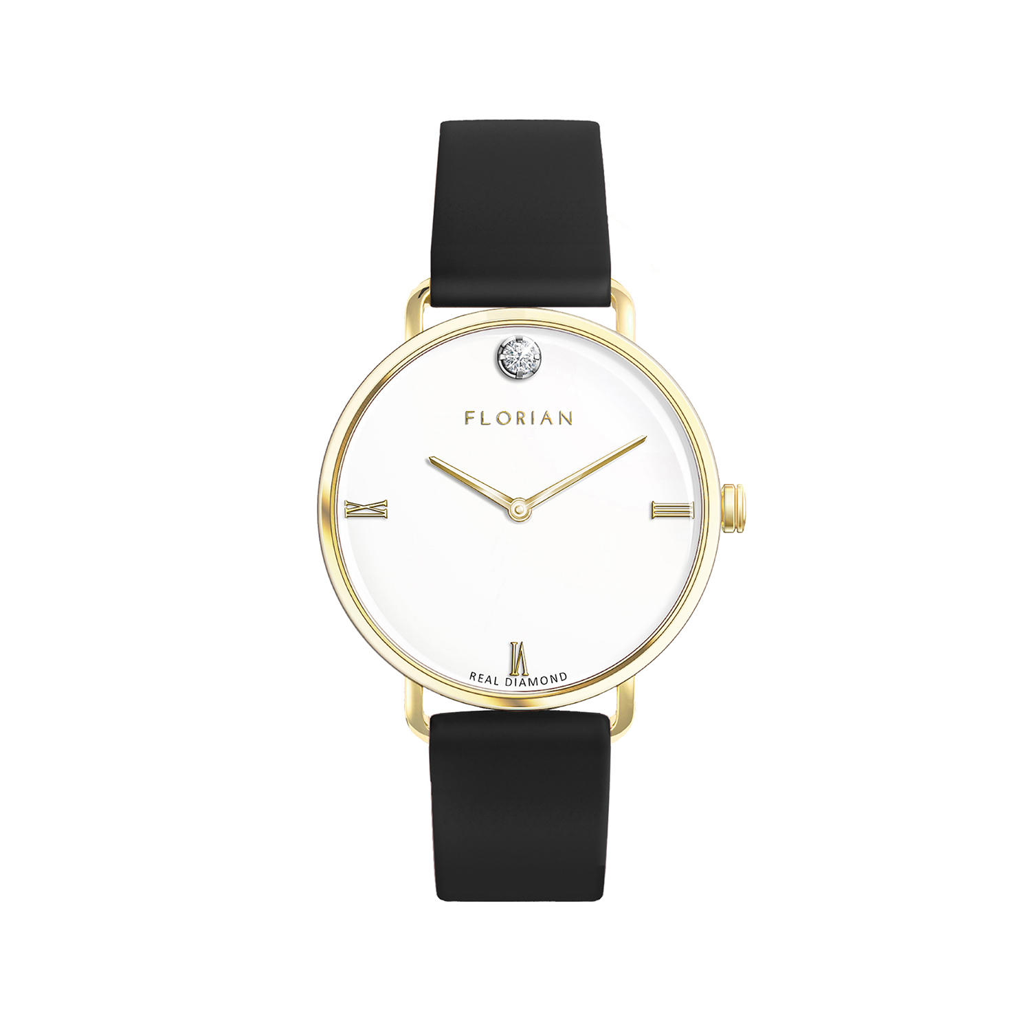 Sleek and sophisticated, this diamond wristwatch is sure to bring a super chic addition to your accessory collection. Encompassed the minimalist dial with a jessamine light gold watch case, the flaring timepiece is accented by a luscious diamond hour marker as the key highlight. Its midnight black strap further promises a comfortable fit around your wrist from day to night.