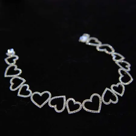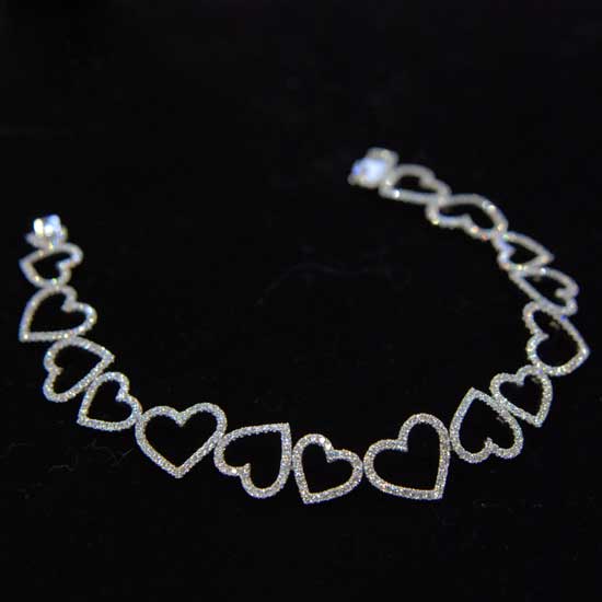 The wedding bracelet looks captivating with a chain of heart-shaped charms. It is dressed with shimmering diamonds to catch your attention. This bracelet will add a youthful touch to your overall image.