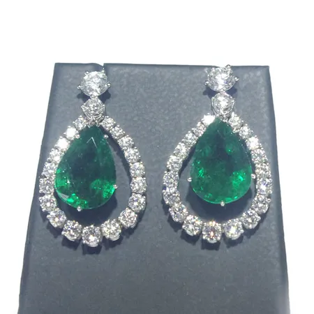 This is a pair of earrings with a timeless and elegant design. Each piece features a green emerald centerpiece and is finely paved with dazzling diamonds. This pair of earrings surely is a great addition to your fine jewelry collection.