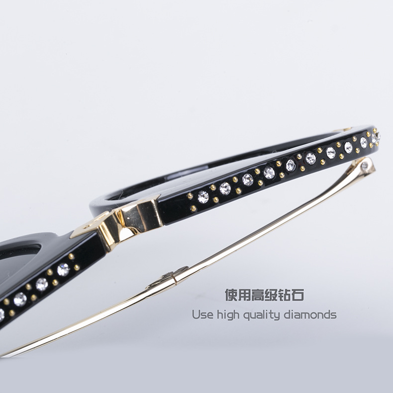 Diamond-encrusted folding sunglasses for women, fashion internet celebrities, same style sunglasses, literary plain glasses, toad mirror sunglasse XH8870