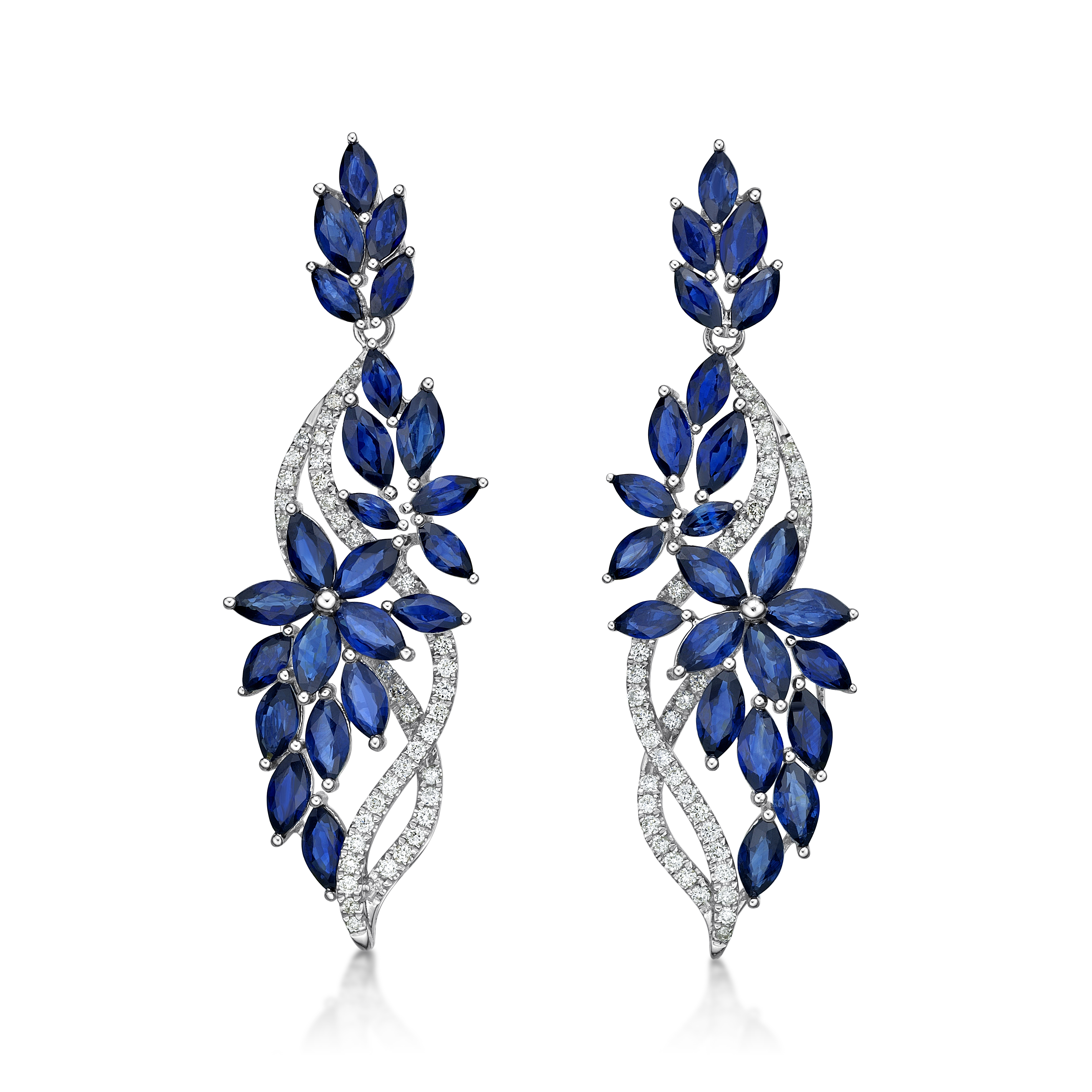 18K Floral Diamond with Blue Sapphire Earring