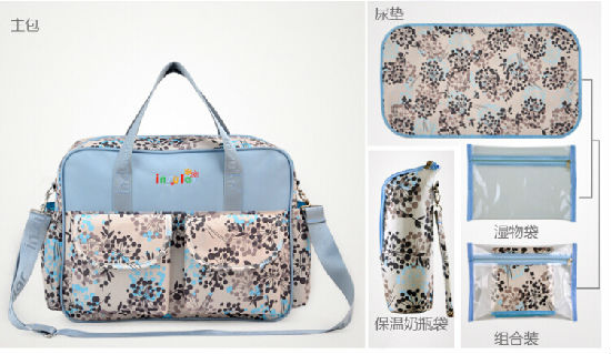 1.This is a leisure, fashion, practical mummy bag, comprising a large capacity mummy bag, Wet bag , a bottle bag. A diaper pad