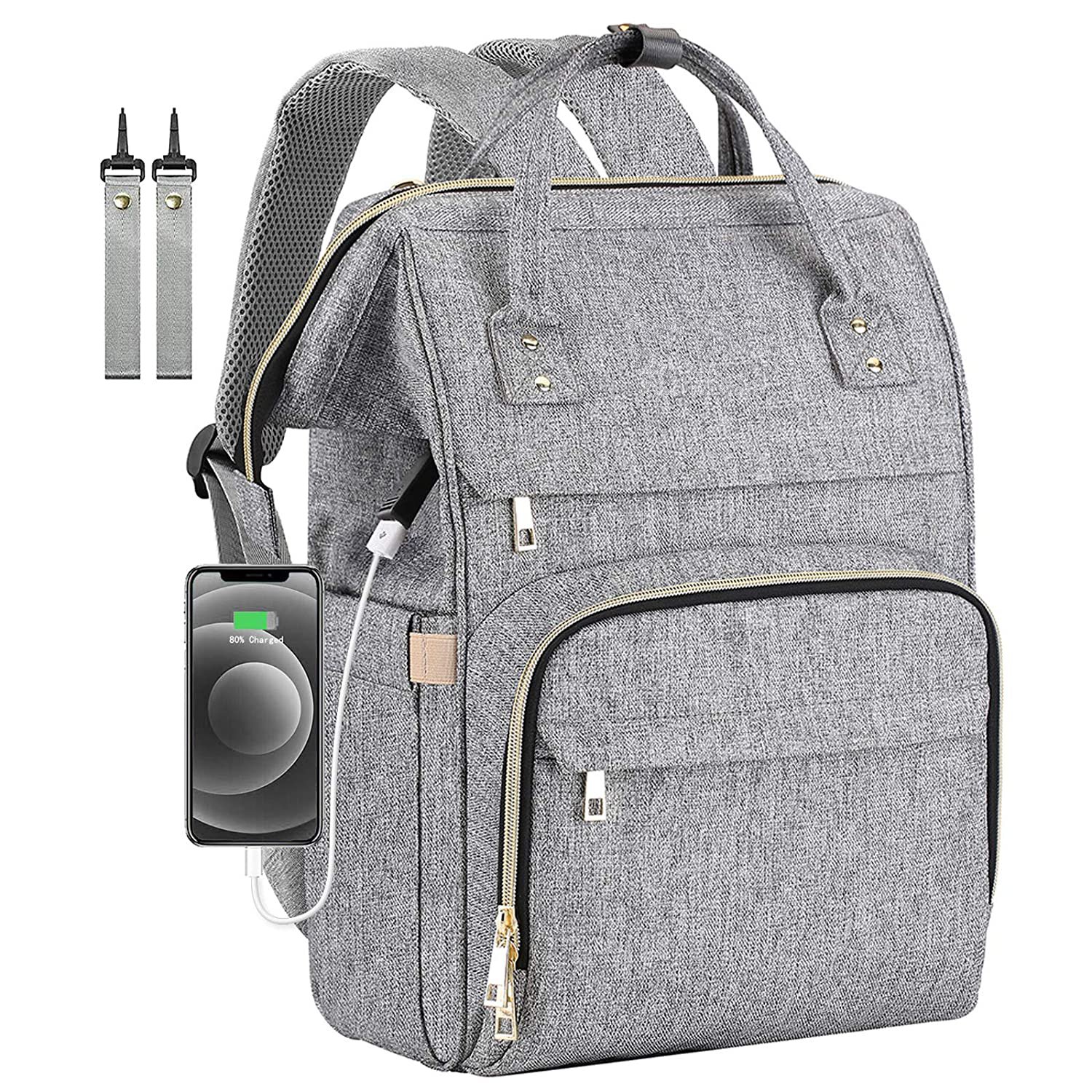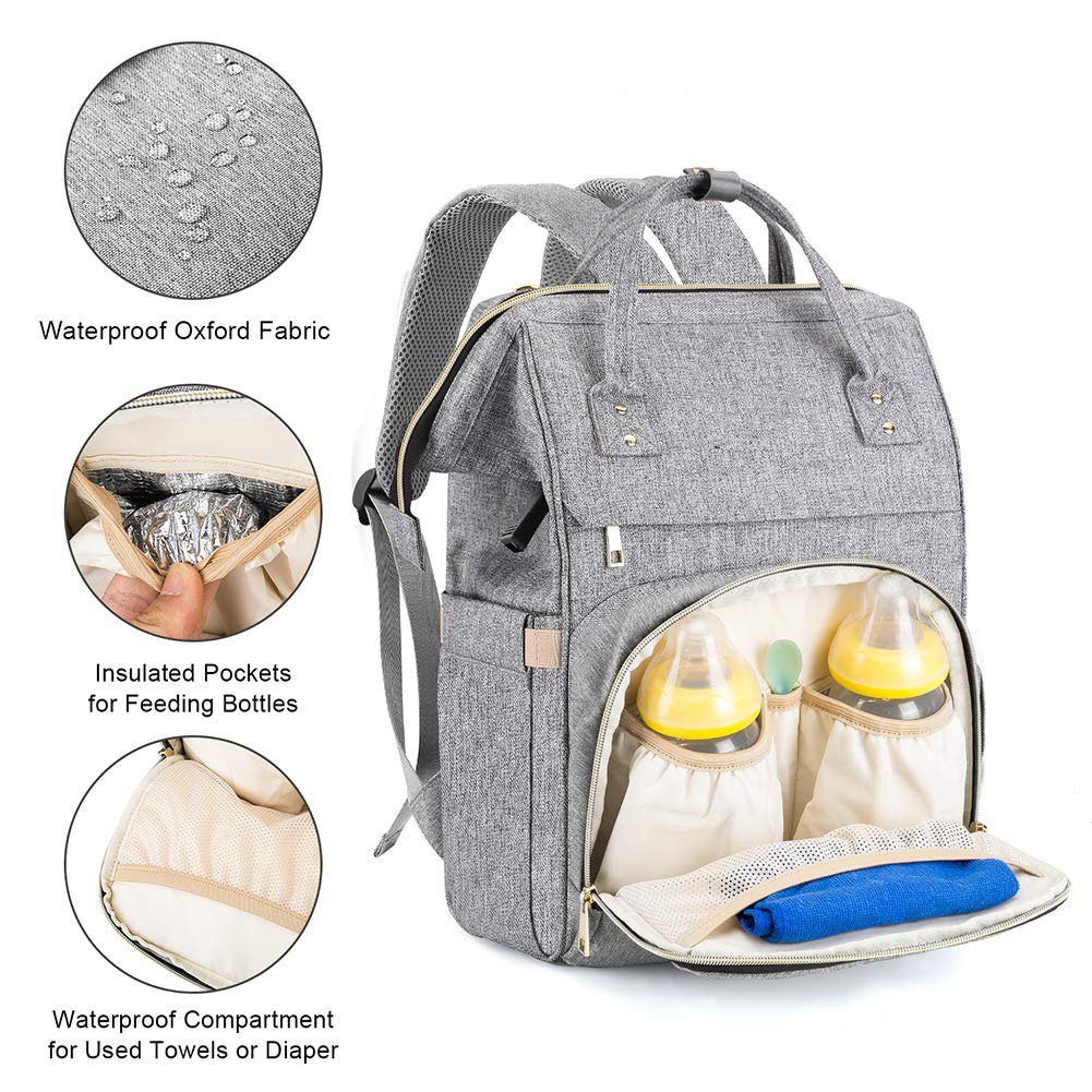 Diaper Bag Backpack, Mokaloo Large Baby Bag, Multi-functional Travel Back Pack, Anti-Water Maternity Nappy Bag Changing Bags with Insulated Pockets Stroller Straps and Built-in USB Charging Port, Gray