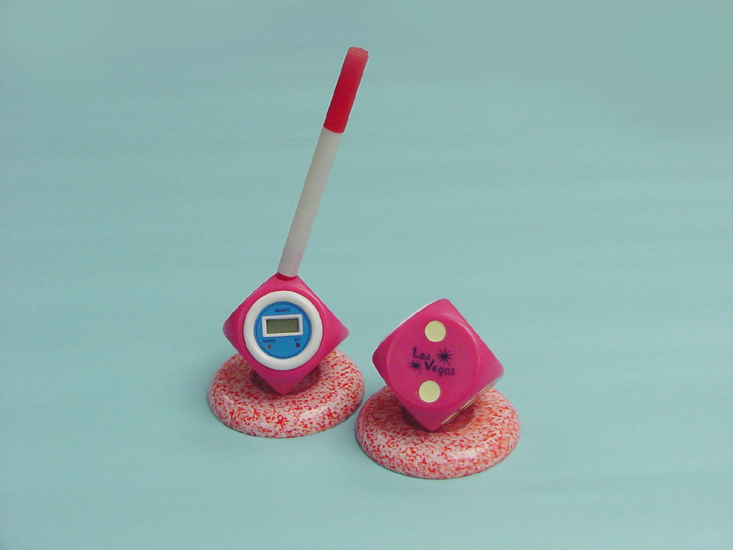 Showcased here is an attractive ornament in a dice design. It comes with a composition of a stick, a dice and a flat round set that are finished in vivid colors. It has a small display monitor on the dice. This premium toy is great for promotional use.