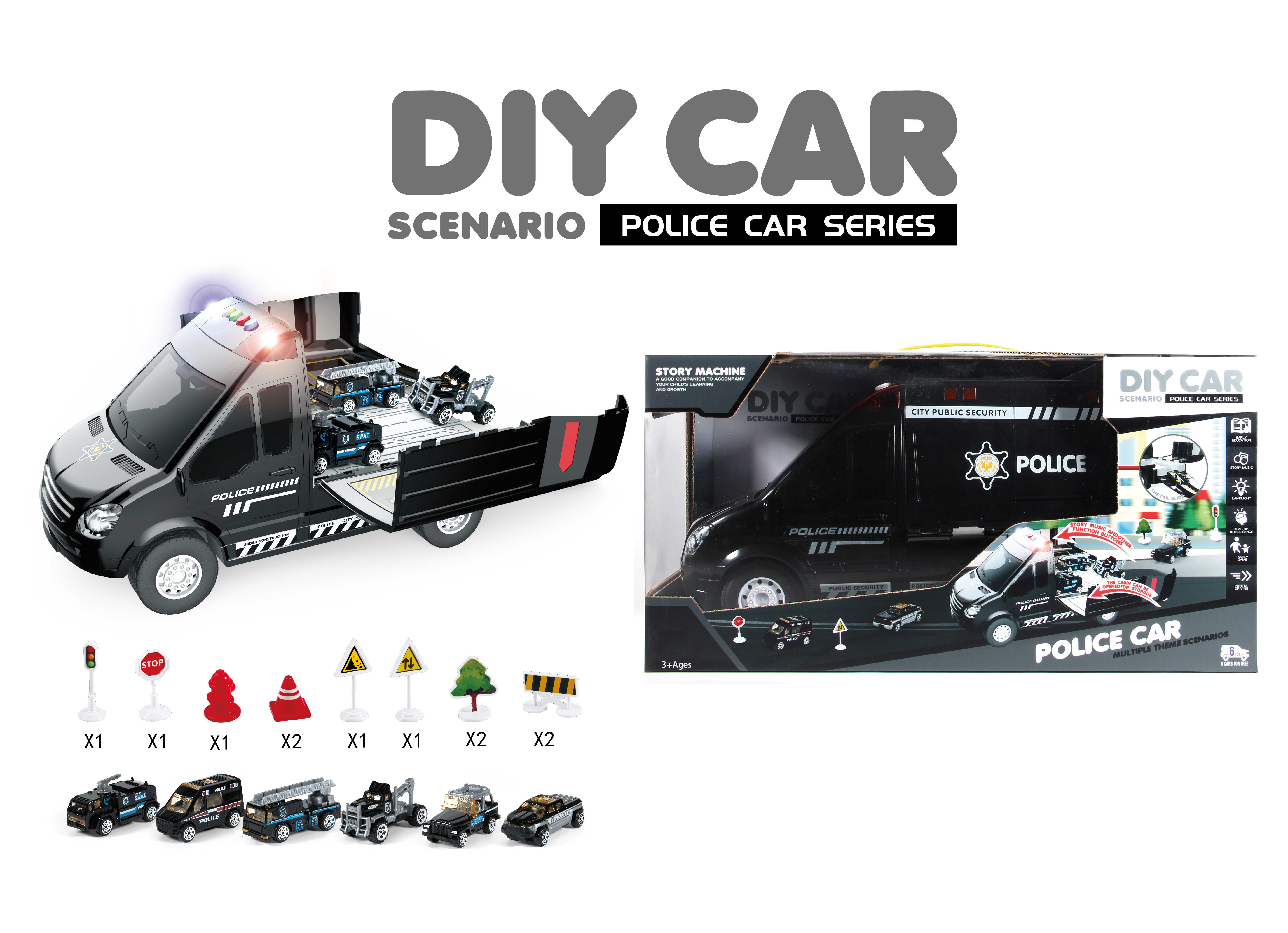 Die Cast Alloy Police car with packing lot W/Alloy Cars for pretend playing