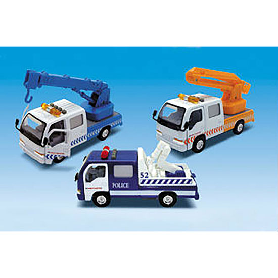 This set of die cast service trucks includes 6 assorted trucks with different movable parts. The service trucks come in realistic designs and have siren sounds and flashing light bars. It fits perfectly in the hands of little ones and can move by simply pulling it back.
