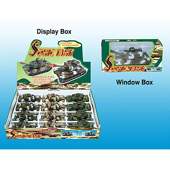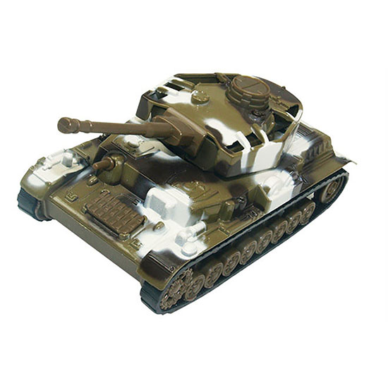 This mini tank is designed with allover camouflage prints and has a movable turret with cannon. It has movable tracks and wheels with pull back and go action and is equipped with special light effects and gun fire sounds. Made with intricate detailing and fine craftsmanship, this toy tank is a perfect addition to any toy box or collection.