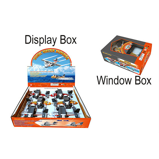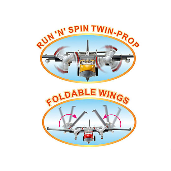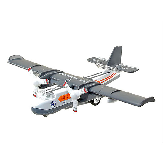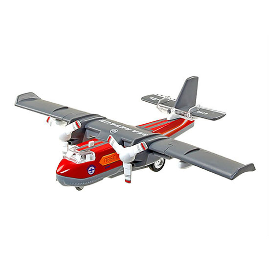 This die cast water bomber plane comes in a realistic design and is equipped with pull back gear for moving. It has two foldable wings and has run-and-spin propellers on the wings. The toy water bomber plane has a cockpit and fuselage that flashes and can provide pilot voice and propeller sound effects.