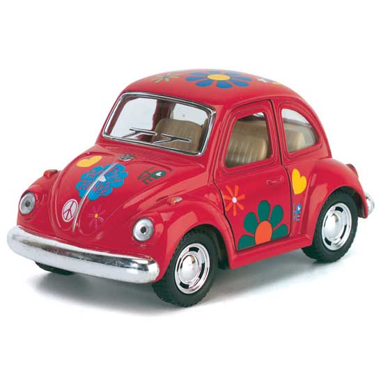 This die-cast toy car is designed based on the classical Volkswagen Beetle in 1960s. It is screen printed with colorful flowers to add a fancy image. This die-cast Beetle is a must-have for die-hard Volkswagen collectors.