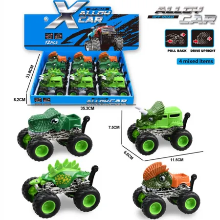 Diecast Pull-Back Dinosaur Stunt Bigfoot Show Boxed 12PCS