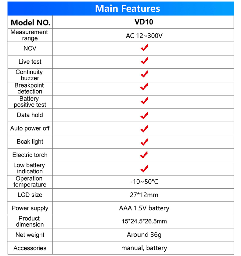 Digital AC voltage tester VD10