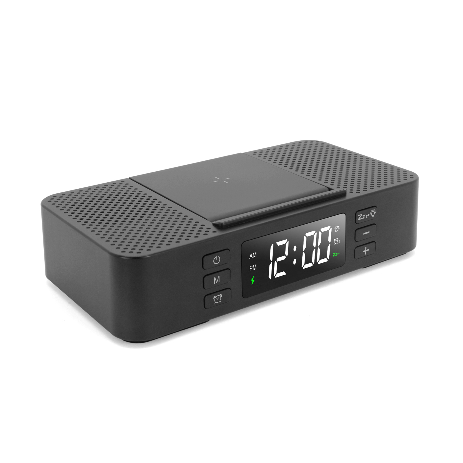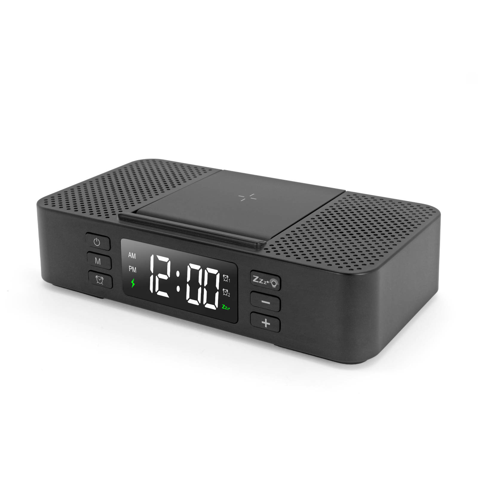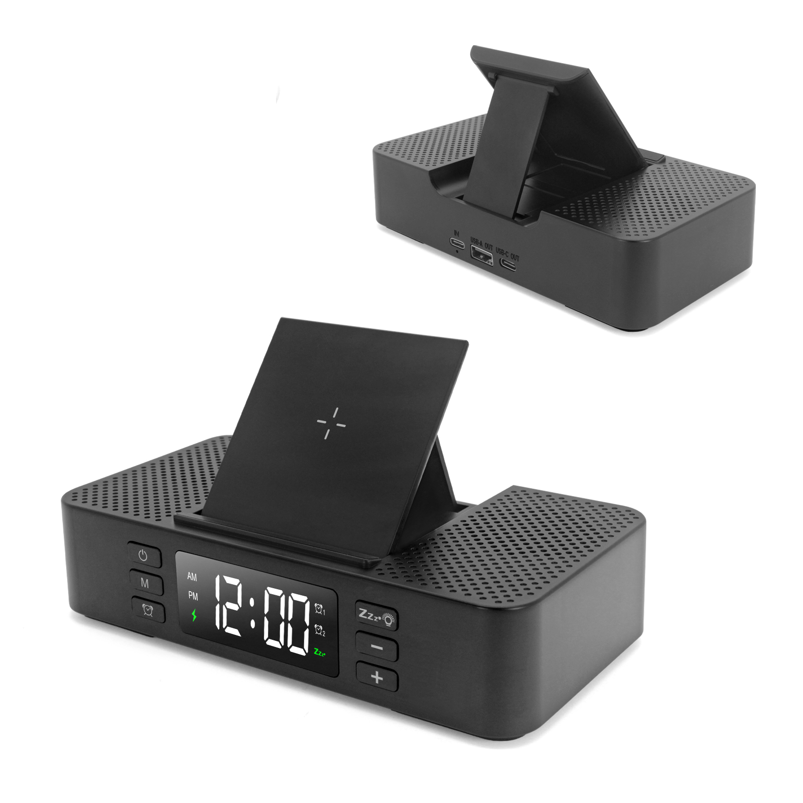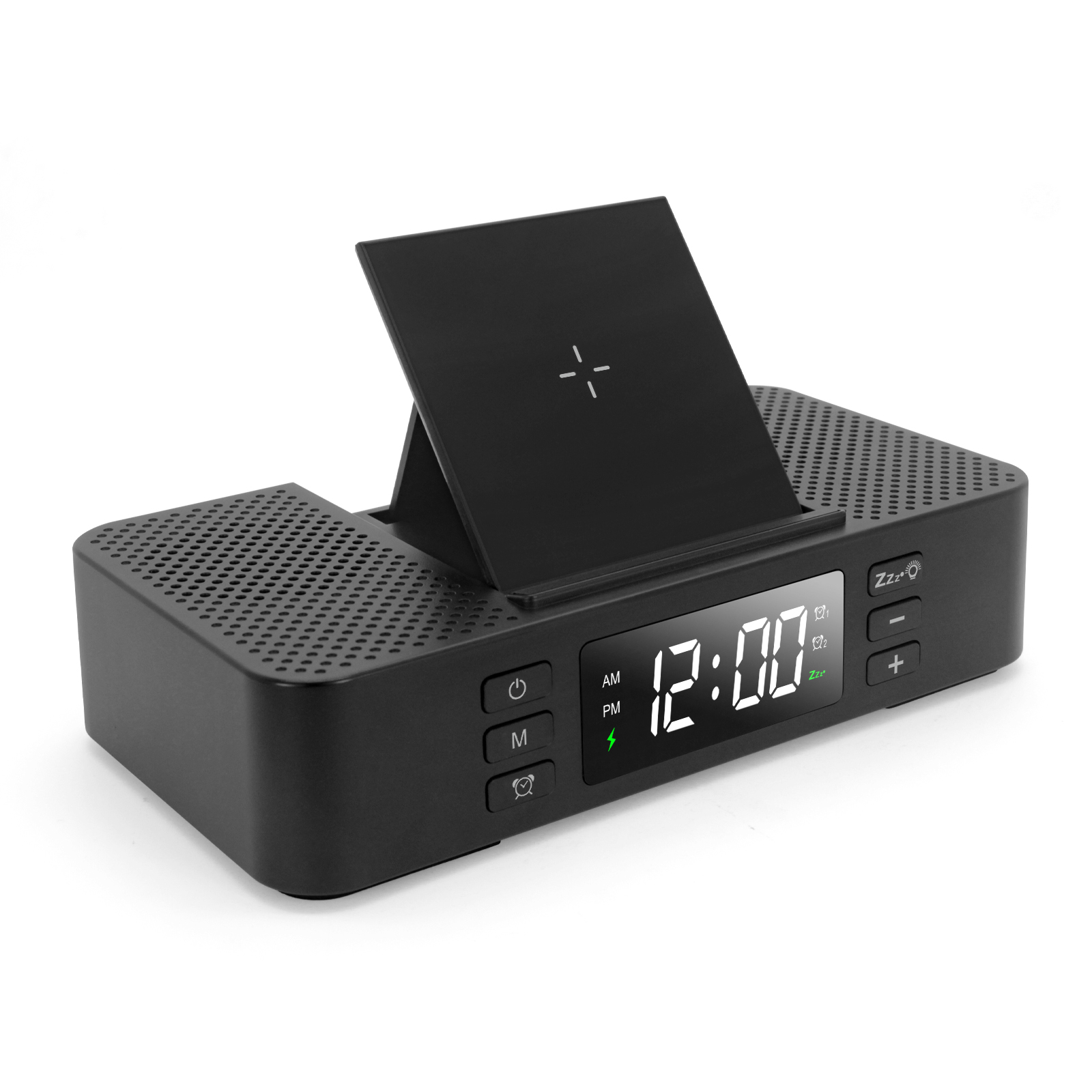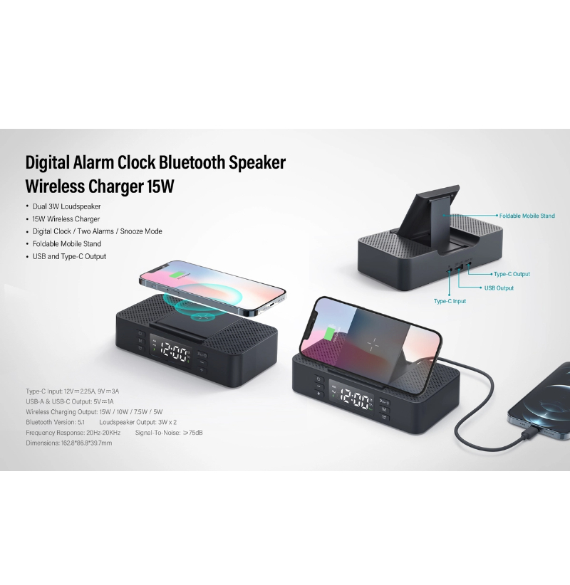 Digital Alarm Clock Bluetooth Speaker Wireless Charger 15W With Phone Holder